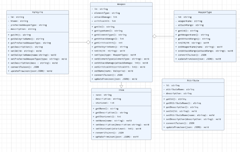 - The system shall display recommended Valkyries for each weapon to guide players in choosing the best Valkyries for their gameplay.